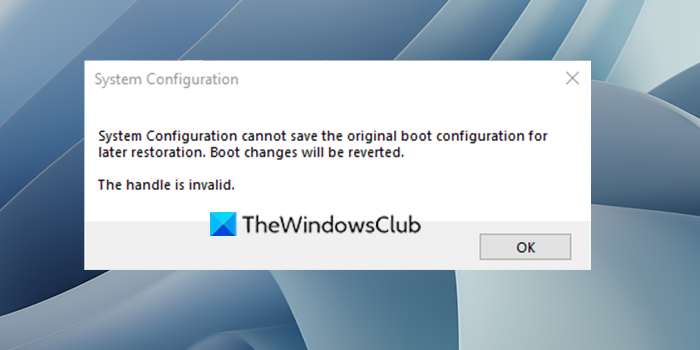 If you are seeing System Configuration cannot save the original boot configuration for later restoration, Kick Changes will be reverted, The handle is invalid mistake, then in this guide, we have a few solutions that are sure to assist you gear up the issue on your Windows 11 or Windows 10 computer.